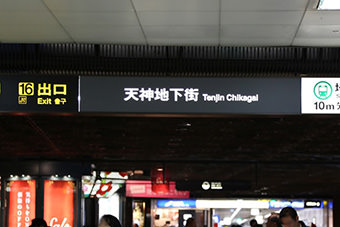 地下鉄天神駅中央改札口を出る
