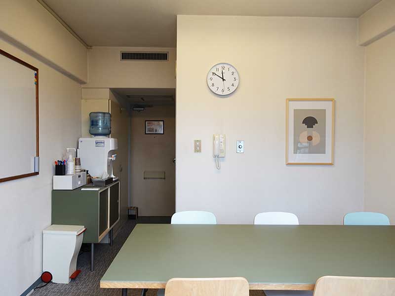 貸し会議室 5はオリーブグリーンで統一されたユーロモダンテイストの空間です。